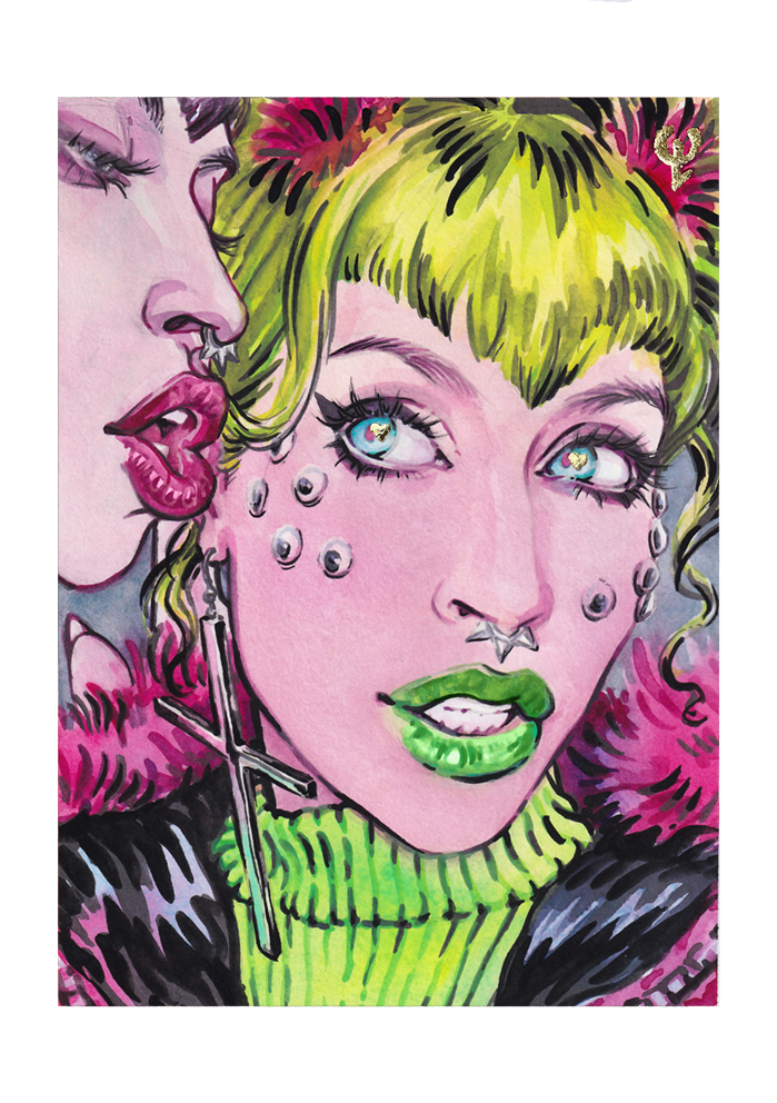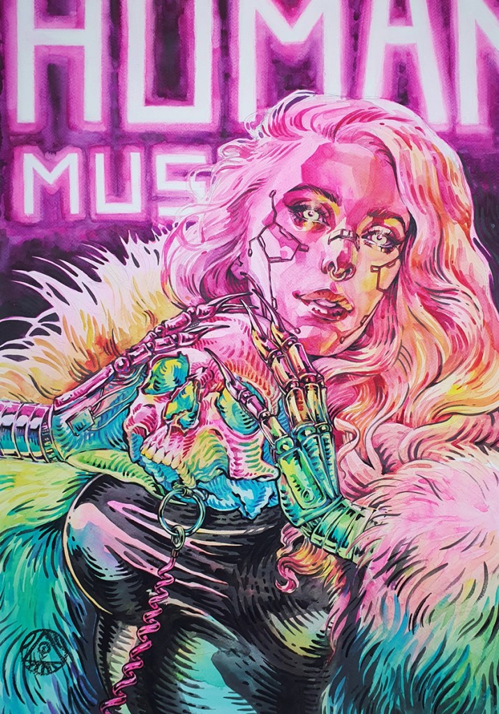 I love to use colored light! Fluid effects of watercolor allow me to make colors shine like a neon sign. I also use fluorescent pigments to leave secret messages on them.